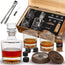 ✔️ This kit comes with everything you need including: Wooden crate gift box, Old Fashioned crystal glasses, Whiskey Decanter, 6 chilling granite stones, 304 stain steel tong, 1 black velvet bag, drink smoker with brush and natural wood chips.
